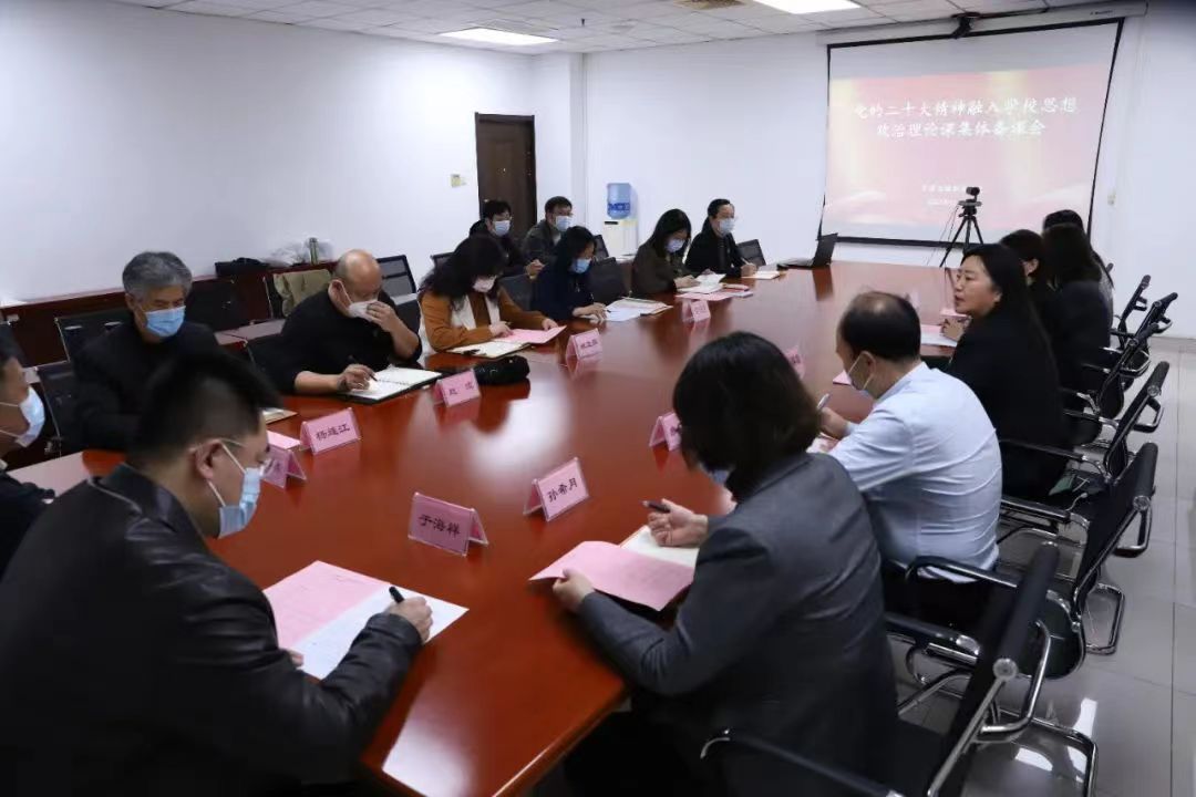 为深入推动党的二十大精神第一时间进教案、进课堂、进学生头脑,11月9日下午,学习贯彻党的二十大精神融入学校思想政治理论课集体备课会在综合楼1107会议室召开。学院党政领导班子、思政部全体教师参会。
