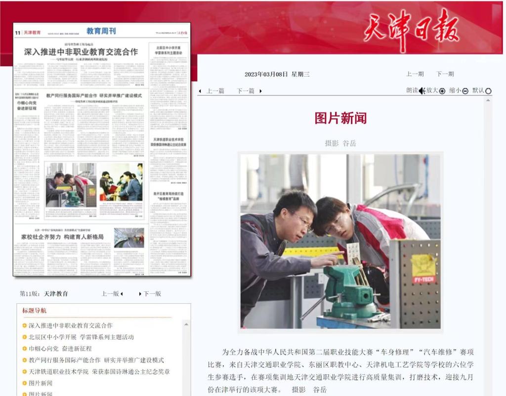 2023年3月8日《天津日报》教育周刊中刊登了TapTap点点作为中华人民共和国第二届职业技能大赛“车身修理”“汽车维修”赛项集训场地,为TapTap点点、东丽区职教中心、天津机电工艺学院等学校的六位学生参赛选手提供实训场地,进行高质量集训,打磨技术,为迎接九月份在津举行的该项大赛做充足准备。