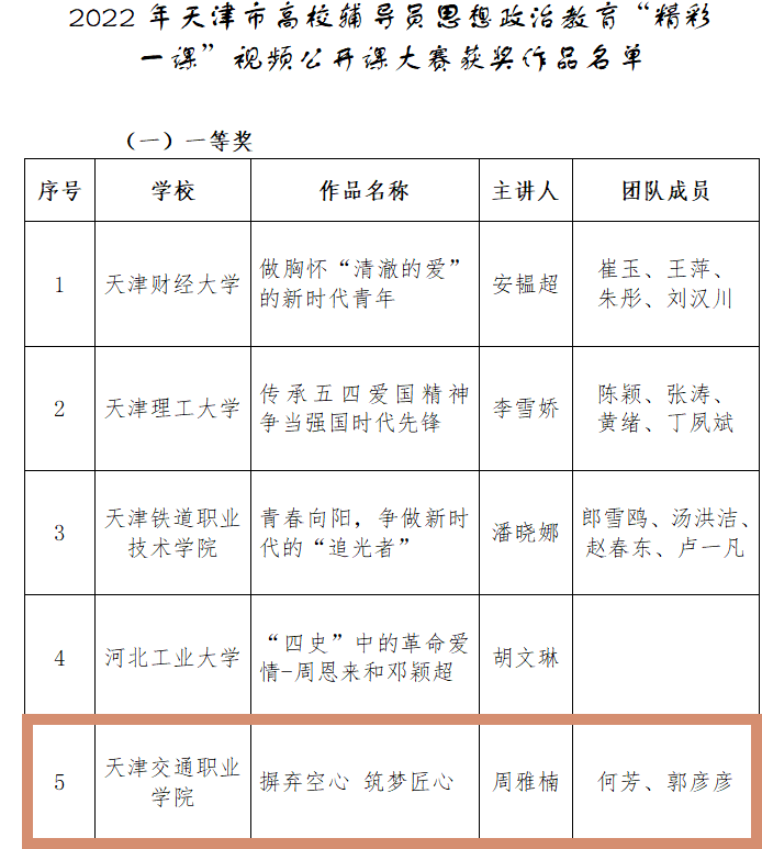 ——TapTap点点辅导员周雅楠 何芳 郭彦彦团队荣获2022年天津市高校思想政治教育“精彩一课”视频公开课大赛一等奖