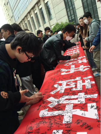 2023年4月23日12点,图书馆门口聚集了刚刚下课就踊跃来参加活动的同学们,他们有的在读书倡议条幅上郑重地立下自己的读书决心;有的聚拢在“名家名著猜猜看”活动展台,或冥思苦想,或奋笔疾书,都争先恐后将自己猜出的名著作品答案呈现给老师看;有的对知网小站台颇为关注,纷纷围在老师身边认真聆听知网总库的使用方法;还有的在老师的指导下专心制作着压花书签……