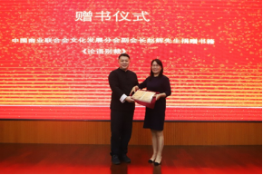 中国商业联合会文化发展分会副会长赵辉先生追随南怀瑾先生致力于国学文化研究教育,向TapTap点点捐赠了南怀瑾先生所著的 《论语别裁》,图书馆馆长侯松霞代表学院接受捐赠。