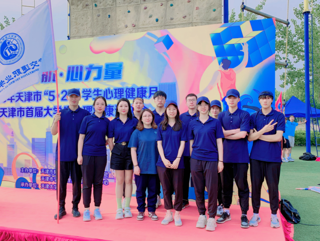 2023年5月14日 上午09:00—17:00,学院心理健康教育办公室周爱静老师和李然老师带领王朕、刘姊姀、张中恒、陈傲雪、张俊赫、梁志鹏、刘明达、周君、张诗雨、齐文静等20名同学前往天津大学心理素质拓展基地参加2023年天津市“5·25”学生心理健康月“心启航·心力量”天津市首届大学生心理健康运动会和悦心525高校特色心理体验项目嘉年华活动。