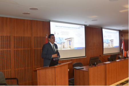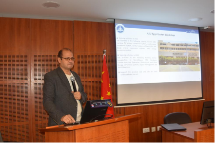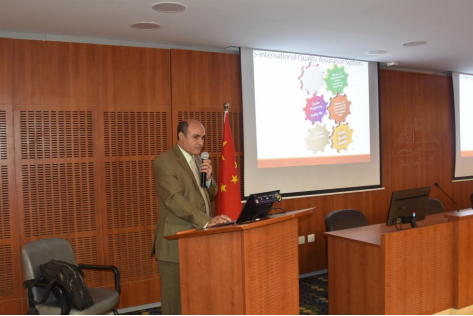 4名埃方专家围绕《关于BTEC职业教育国际标准》《艾因夏姆斯大学鲁班工坊EPIP做中学》《贝尼苏韦夫技术大学办学优势、校企融合及国际合作项目》《技术教育改革策略》进行专题发言。