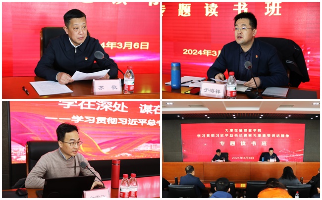 为深入学习贯彻习近平总书记视察天津重要讲话精神,引导领导干部善作善成,奋力开创学院事业高质量内涵式发展新局面,学院党委于3月6日至7日,采取领导宣讲、专家辅导、集中学习、分散自学、研讨交流等形式成功举办了学院党委理论学习中心组(扩大)学习贯彻习近平总书记视察天津重要讲话精神专题读书班。学院党政领导班子成员、基层党支部书记、全体部门负责人和全体中层副职干部参加培训。