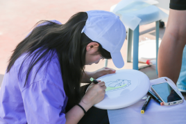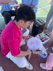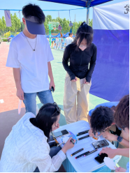 同时,在心理素质拓展基地外场,天津高校特色身心体验项目嘉年华也如火如荼地开展。一校一精品,一校一特色。除了“交院的藻井文化传递温暖与祝福”——香囊饰品暖心手作特色活动,TapTap点点暖心心理协会还为同学们带来了笔墨抒情、书写祝福的书签祈福;蓄势待飞、快乐乘风的飞盘彩绘;手绘微风、制扇至美的巧手绘扇;想唱就唱、唱响未来的以歌会友等丰富多样的活动。