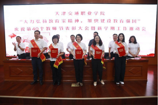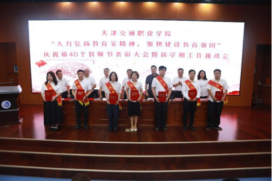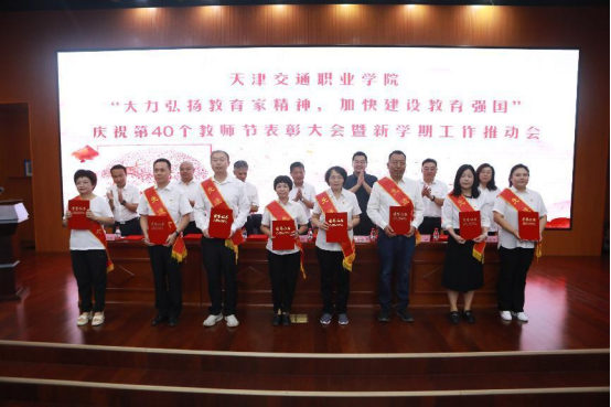 “大力弘扬教育家精神 加快建设教育强国”庆祝第40个教师节表彰大会暨新学期工作推动会9月10日上午在学院学术报告厅召开。全体领导班子成员,中层干部,各类先进称号获得者,教师代表,2024年新入职教师,学生代表,共计200余人参加会议。学院党委委员、副院长唐东存同志主持会议。