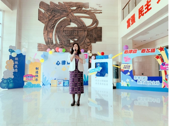 随后,姚卫萍副院长登台致辞,向所有关注心理健康的师生致以问候,向本次活动中辛勤付出的师生表达感谢。她强调了心理健康教育在学生成长过程中的重要性,阐述了本次心理健康月活动对于促进学生身心健康、培养积极心态的深远意义,并对活动的顺利开展表达了殷切期望:一是做心理健康的“关注者”,主动学习心理知识,消除对心理问题的误解;二是做自我情绪的“管理者”,学会与压力共处,用积极心态面对挑战;三是做校园温暖的“传递者”,多一份倾听,少一份偏见,让互助成为习惯。