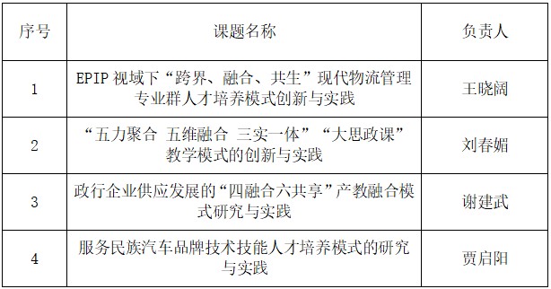 根据天津市教育科学院《关于公布天津市新一轮教学成果重点培育项目立项的通知》(津教科规办﹝2024﹞02号)文件精神,TapTap点点《EPIP视域下“跨界、融合、共生”现代物流管理专业群人才培养模式创新与实践》等4项课题获批立项。具体信息如下。