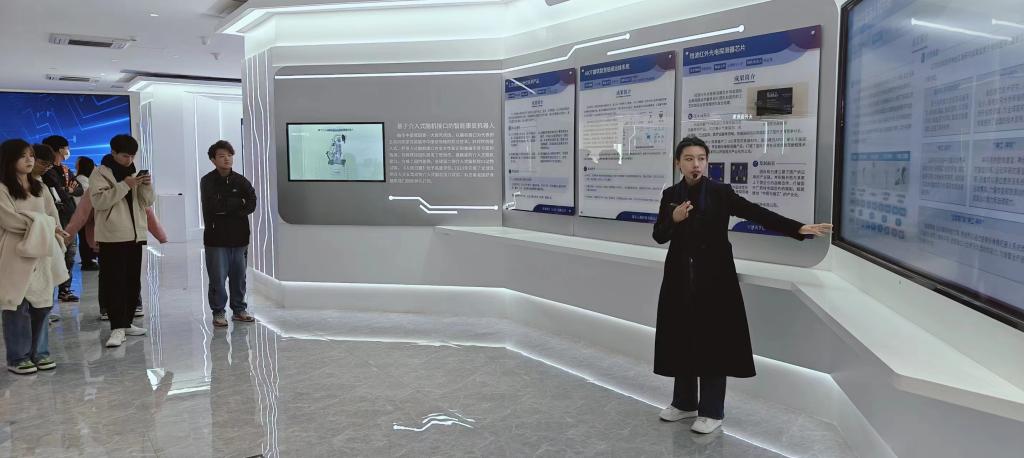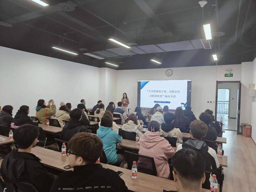 活动中,师生代表走进天开园,在工作人员的带领下实地参观走访。在天开高教科创园的政务服务区,大家深入体验了一站式服务给创业者带来的便捷的创新创业服务环境。在天开高教科创园的成果展示区,师生们了解到新能源、人工智能、合成生物等领域的创新项目,每一个成功孵化的项目都对各自领域起到了积极推进作用,也为相关领域的发展作出积极贡献。同时,工作人员细致深入地为全体师生代表介绍了天开园规划方案、功能定位及扶持政策。